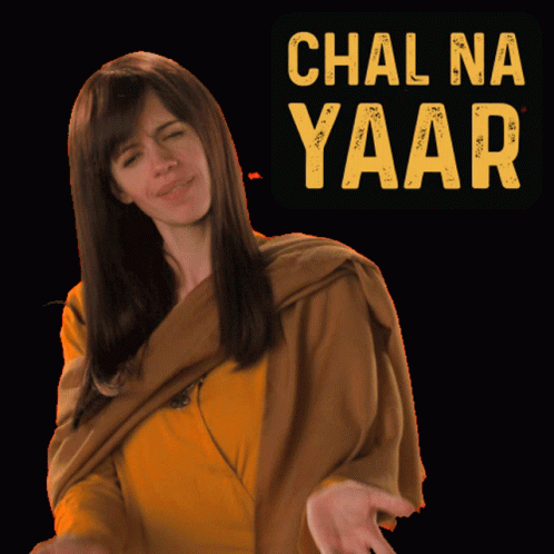 Kalki Koechlin gesturing with 'Chal Na Yaar' text, from Sacred Games.