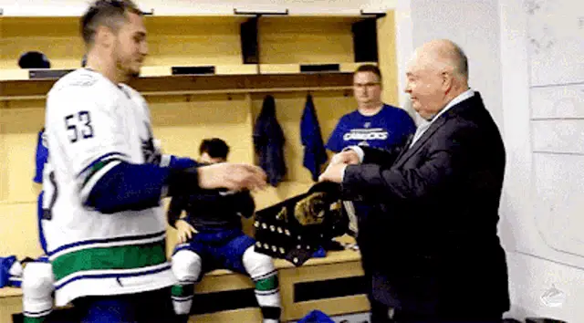 A man in a red sweater confidently declares 'I am the best' into a microphone on a stage.