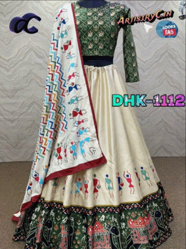 Showcasing a beautiful Chaniya Choli Navratri Lehenga, style DHK-1112, perfect for festive occasions from Looksfab Fashion.