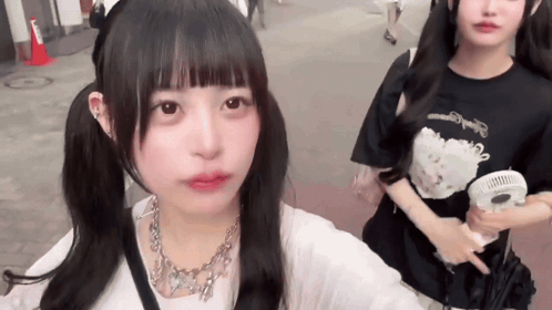 a girl with pigtails is wearing a black shirt that says tokyo on it