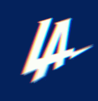 Dynamic LA Chargers logo with a striking white 'LA' and lightning bolt on a blue background, featuring a glitch effect.