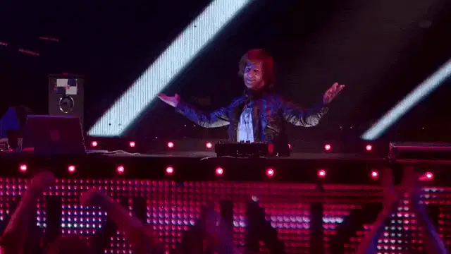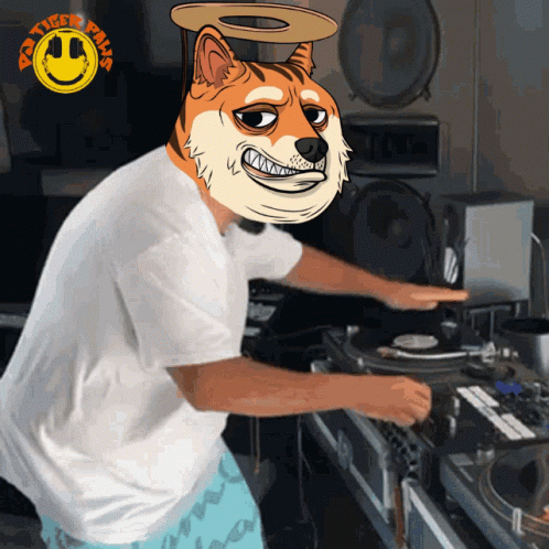 DJ Tiger Paws, a character from Charistheai, is seen actively mixing music on turntables.