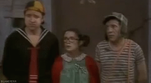 Chaves, Chiquinha, and Kiko from El Chavo del Ocho look sad and dejected, standing together.
