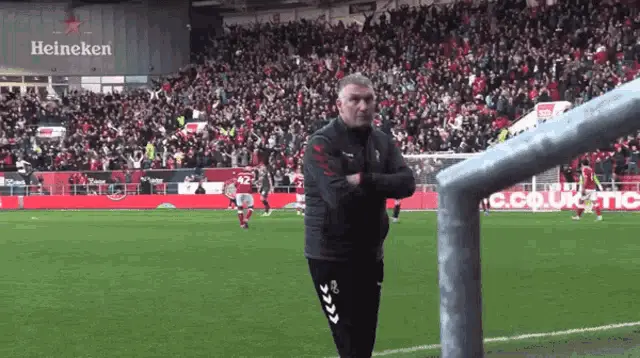 A crowd of people cheering and reacting with excitement, raising their hands and expressing shock.