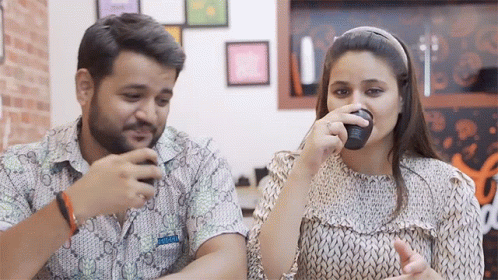 Namra Qadir and Virat Beniwal share a cheerful moment, drinking chai from kulhads and making a toast.