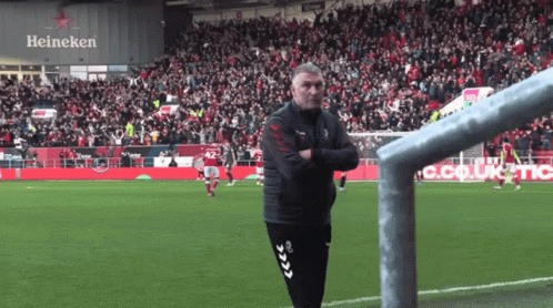 Nigel Pearson, manager of Bristol City, cheers enthusiastically to the crowd at a football match.