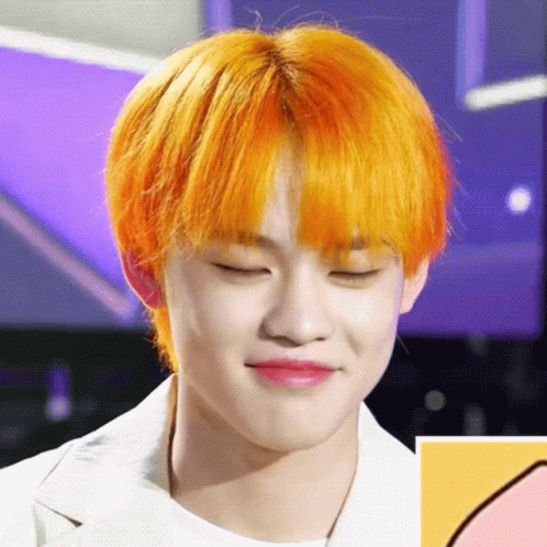 Chenle NCT Dream with bright orange hair blushes adorably in a close-up shot.