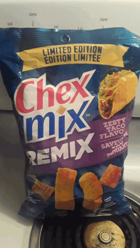 a bag of chex mix remix sitting on a stove