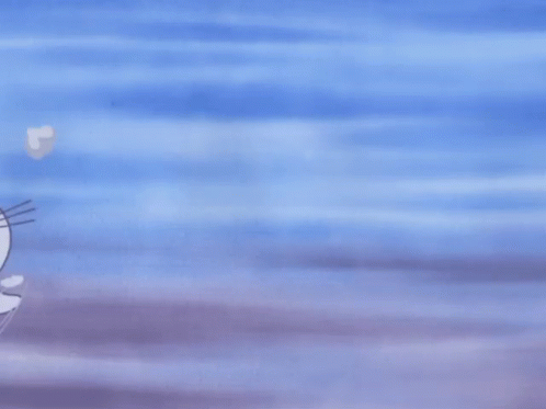 Chi the cat runs happily with a wide smile against a blue background, showing joy and speed.