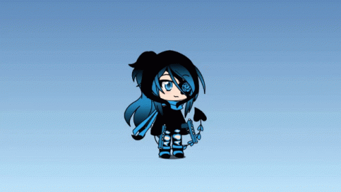 A cute chibi anime girl with blue hair, an eye patch, wearing a hooded jacket and scarf.