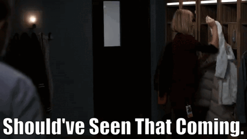 Hannah Asher, played by Jessy Schram, in a locker room with the caption 'Should've Seen That Coming'.