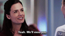 Dr. Natalie Manning from Chicago Med, played by Torrey DeVitto, smiles and says 'Yeah. We'll miss you.'
