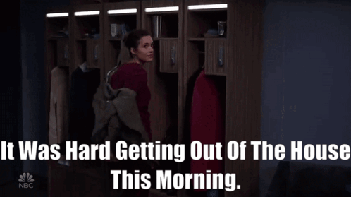 Natalie Manning from Chicago Med in a locker room, expressing her morning struggles.