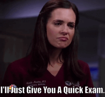 Dr. Natalie Manning from Chicago Med performs a quick examination on a patient.