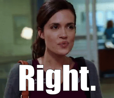 Natalie Manning (Torrey DeVitto) from Chicago Med delivers a sarcastic 'Right.' in a hospital hallway.