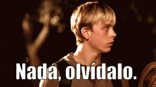 Jeff Daien Sterling, a blonde boy, says 'Nada, olvídalo.' (Nothing, forget it.) with a somber expression.