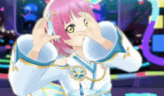 Chiemi Tanaka performs as Rina Tennoji from Love Live! Nijigasaki School Idol Club, dancing on stage.