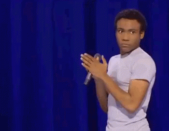 Childish Gambino (Donald Glover) clapping his hands on stage in front of a blue curtain.