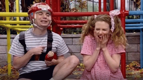 Mike Myers and Nicole Kidman in a hilarious Saturday Night Live sketch, portraying excited children on a playground.