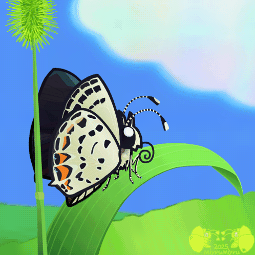 a butterfly is sitting on a green leaf with the year 2005 on the bottom