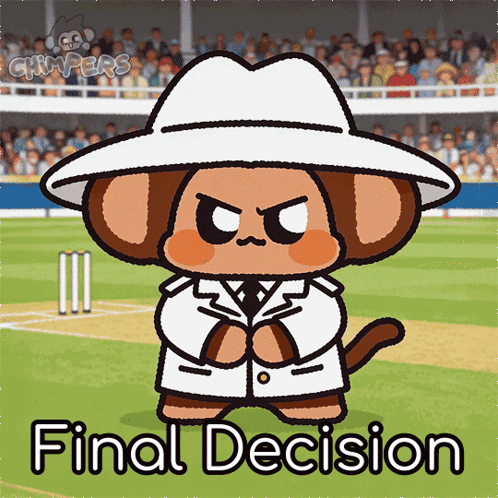 a cartoon of a monkey wearing a hat with the words final decision written below it