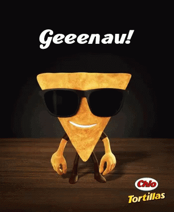 A cool Chio tortilla chip character wearing sunglasses says 'Geeeenau!' in this animated ad.