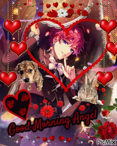 Chloe Mahoyaku from The Wizards Promise in a heart-shaped frame with 'Good Morning Angel' text.
