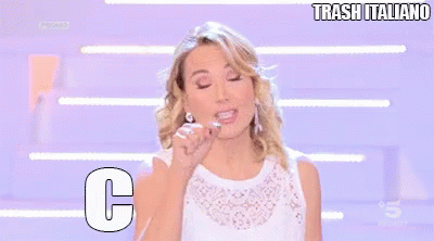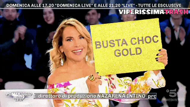 Barbara D'Urso reacts with a 'choc' gesture on Domenica Live, embodying Italian trash TV.