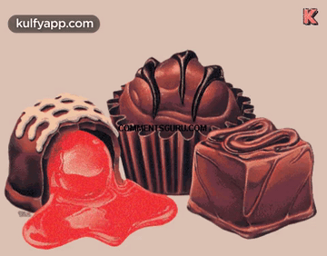 A delightful drawing of three chocolates, one with a red liquid filling, perfect for Chocolate Day.