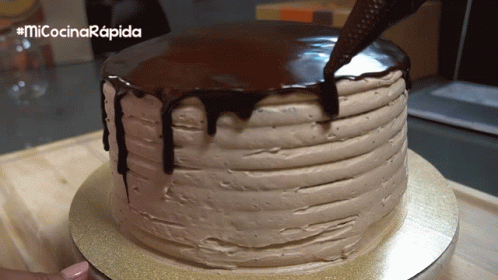 A delicious chocolate cake is decorated with a smooth chocolate drip, showcasing a quick recipe from #MiCocinaRápida.