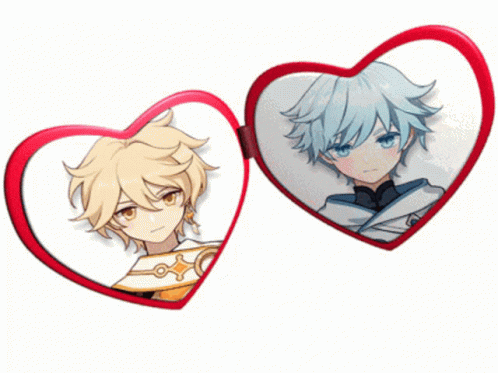 two hearts with a picture of two anime characters inside of them