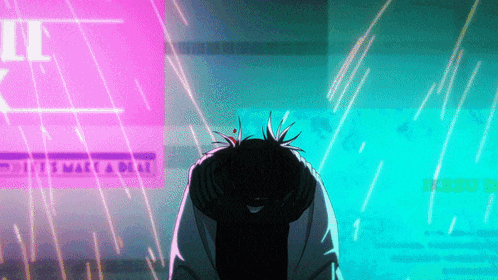a man is kneeling down in front of a sign that says ' it ' on it