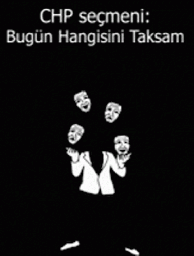 A black and white animation of a person juggling various masks, with the text 'CHP voter: Which one should I wear today?'