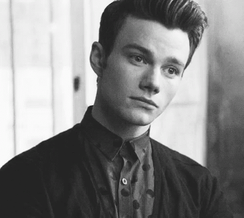 Chris Colfer as Kurt Hummel from Glee makes a thoughtful expression, then a slight smirk in this black and white clip.
