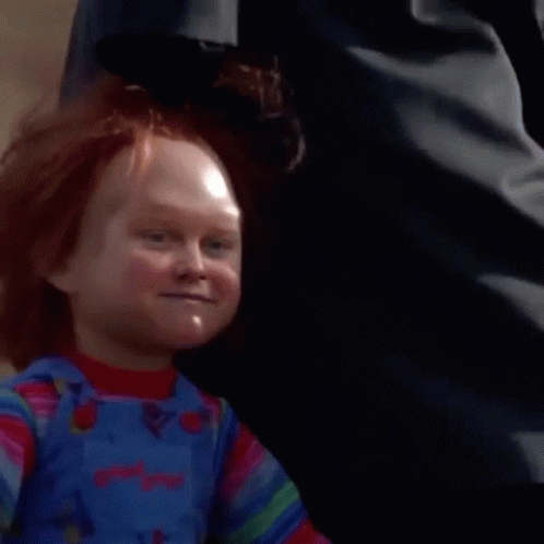 A close-up of the iconic Chucky doll, featured in content by Chris Cote, Bspn, Giggles, and Casper Villa.