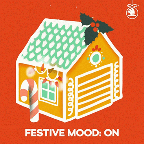 A festive gingerbread house with a car pulling out of its garage, setting a cheerful Christmas mood.