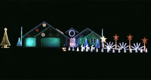 A residential house beautifully adorned with a dazzling array of Christmas lights and festive decorations.