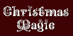 Animated text 'Christmas Magic' shimmers with festive glitter on a red background.