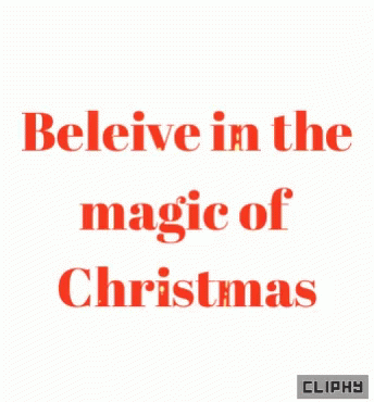 Animated text encouraging belief in the magic of Christmas, with words changing colors.