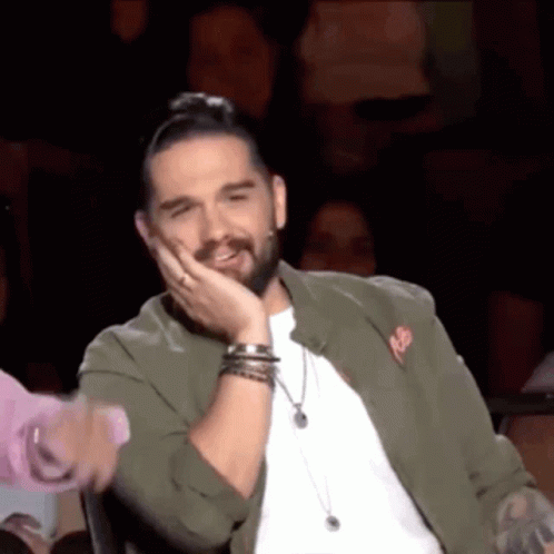 Christos Mastoras smiling and touching his face, looking adorable and touched by the moment.