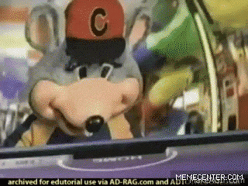 Chuck E. Cheese, the iconic mouse mascot, appears on screen with the word 'AWESOME!!!' displayed prominently.