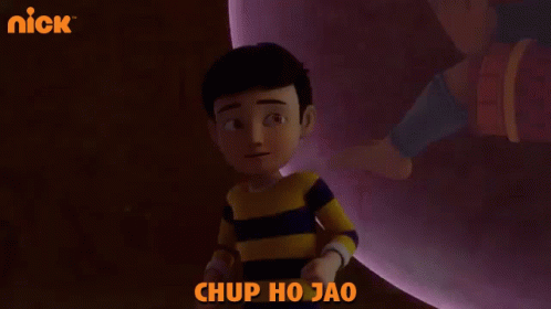 Rudra from Nick India's cartoon, with the Hindi caption 'Chup Ho Jao' (Shut Up).