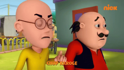 Patlu angrily tells Motu to be quiet with the phrase 'Chup Karoge' in this scene from Motu Patlu.