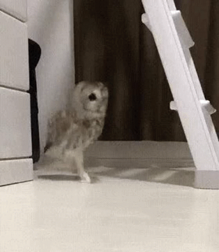 A small, adorable owl walks away with tiny steps, bidding 'Ciao Byebye'.