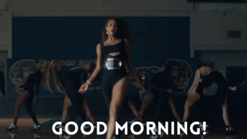 Ciara performs a dynamic dance routine from her 'Level Up' video, with 'Good Morning!' text overlay.