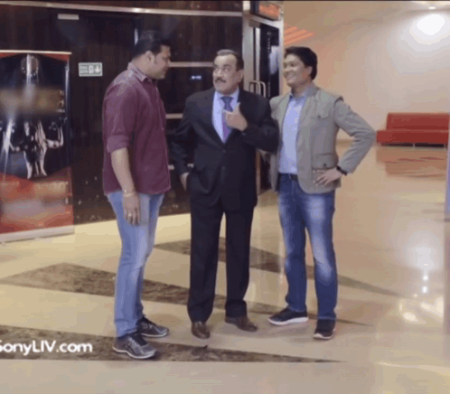 CID stars Abhijeet, ACP Pradyuman, and Daya in a casual moment at a public venue.