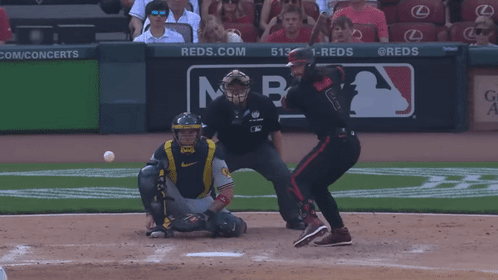 Jonathan India, a Cincinnati Reds baseball player, swings his bat at a pitch during an MLB game.