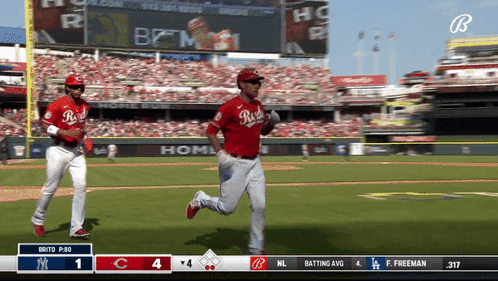 Cincinnati Reds' Luke Maile hits a home run, runs the bases, and celebrates with teammates in the dugout.