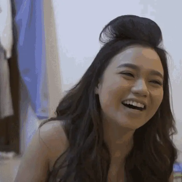 Aulia makes a cute finger heart gesture and winks, expressing 'Cinta Kamu' (I Love You).