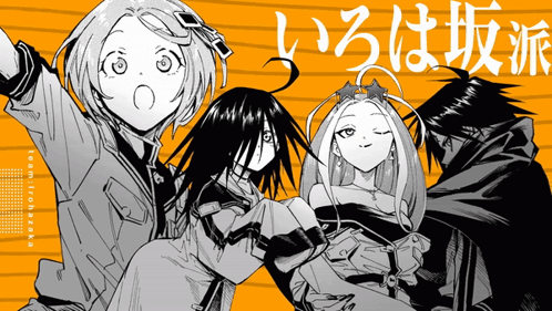 Manga panel featuring characters Ensa Kasuri, Iroha Irohazaka, Kyora Toshusai, and Sunka Umitsubame from Cipher Academy.